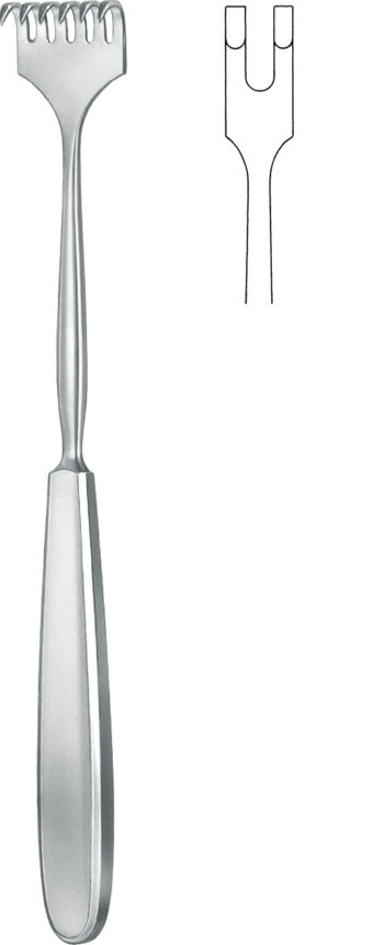 Retractors, wound Spreaders , Retractor, acc. to Volkmann, semi-sharp, 4 prongs